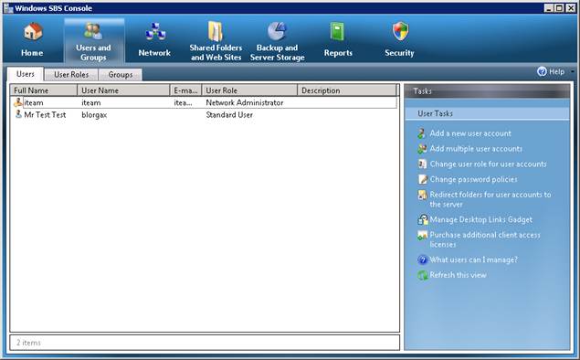Det man måste göra är att i SBS Console under Users välja ”Change user role for user accounts”.