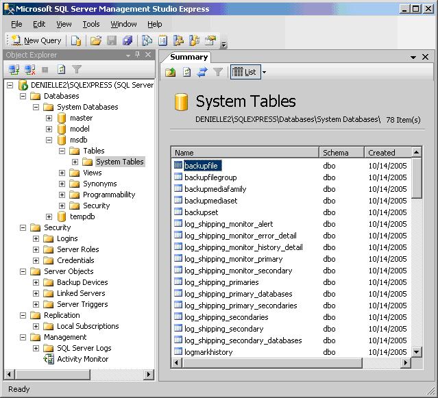 Allt annat funkar som vanligt. Kort sagt ett perfekt verktyg för en utvecklare som vill administrera SQL Servrar från sin vanliga arbetsstation eller hantera en SQL Server 2005 Express på sin /Utvecklingsdator. Ladda ner här: http://www.microsoft.com/downloads/details.aspx?FamilyId=C243A5AE-4BD1-4E3D-94B8-5A0F62BF7796&displaylang=en