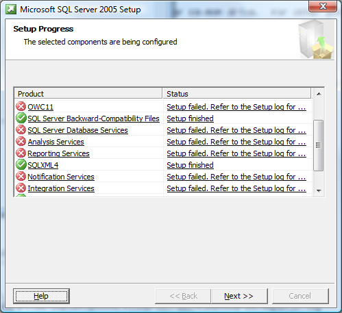 Idag sprang jag på ett ganska långsökt problem vid installation av SQL Server 2005: tydligen går det inte att inte att installera SQL Server om Office 2003 Web Components (OWC11) redan är installerat.