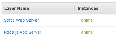 Inuti en Stack skapar man ett eller flera Layers. Dessa fungerar som mallar för den eller de instanser man vill köra. Om man som i mitt exempel har en applikation som består av en webb och ett API som kör NodeJS kan det se ut såhär:
