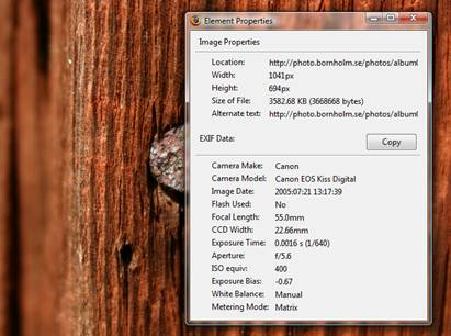 FxIF är ett tillägg till FireFox som gör att man kan se Exif-information direkt i webbläsaren.