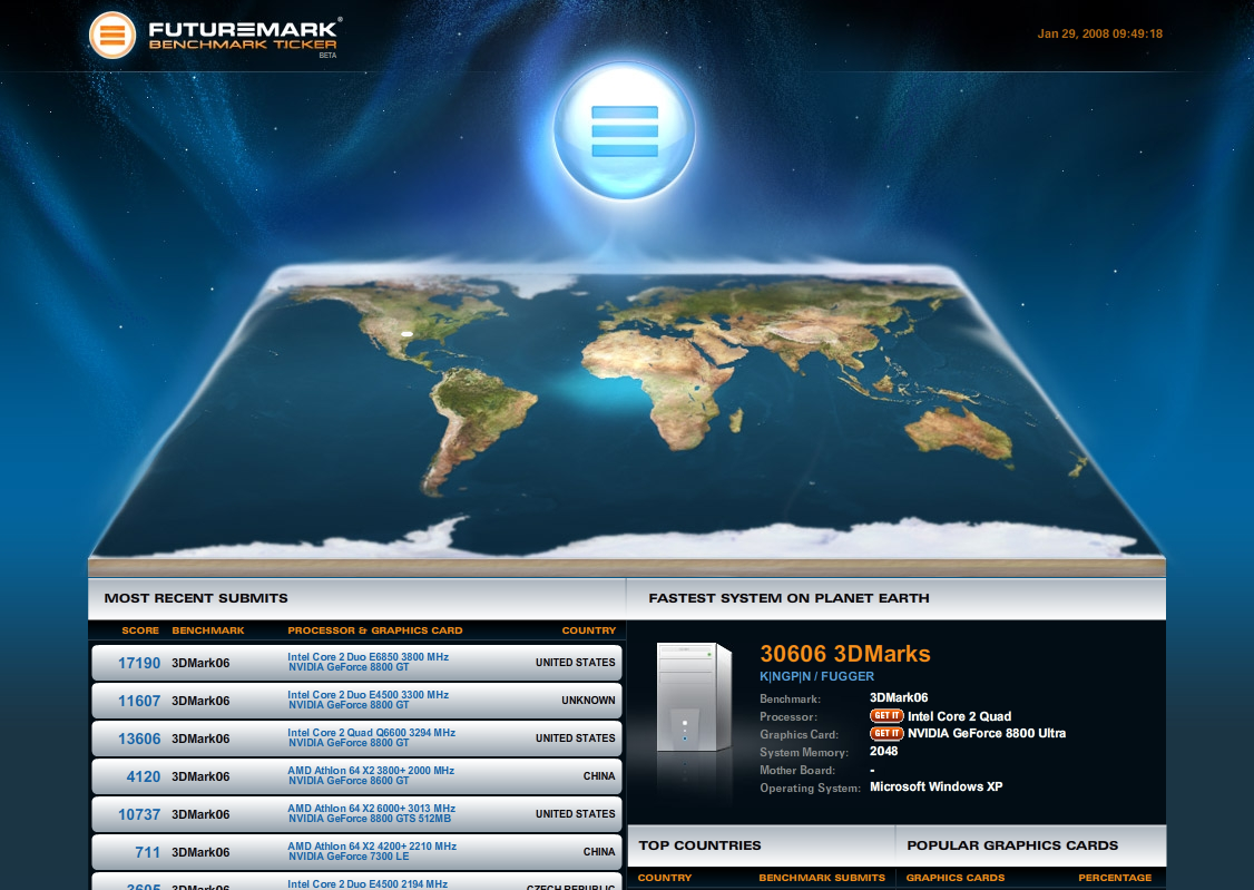 3DMark är programmet som har blivit lite av en standard när det gäller att mäta sin dators prestanda, särskilt när det gäller hur den klarar tunga 3D-applikationer som nya spel. Tillverkaren Futuremark har skapat en community kring sitt program dit man kan skicka in resultaten och jämföra med andra. Senaste tillägget till communityn är en riktigt snygg flashkarta som visar i realtid hur testerna går.