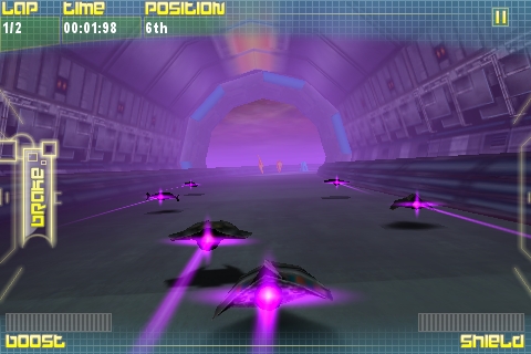 I App Store för iPhone finns spelet Low Grav Racer. Det är ett spel som man om man är snäll kan säga har inspirerats av Wipeout, särskilt PSP-versionen Wipeout Fusion. Om man inte är snäll kan man säga att Cobramobile har kopierat ganska friskt. Om man bortser från det så är Low Grav Racer en väldigt rolig Wipeout-klon, och jag måste säga att accelerometerstyrningen är mer naturlig och bättre än analogjoysticken på PSP. Spelet känns väldigt responsivt och lagom svårt.