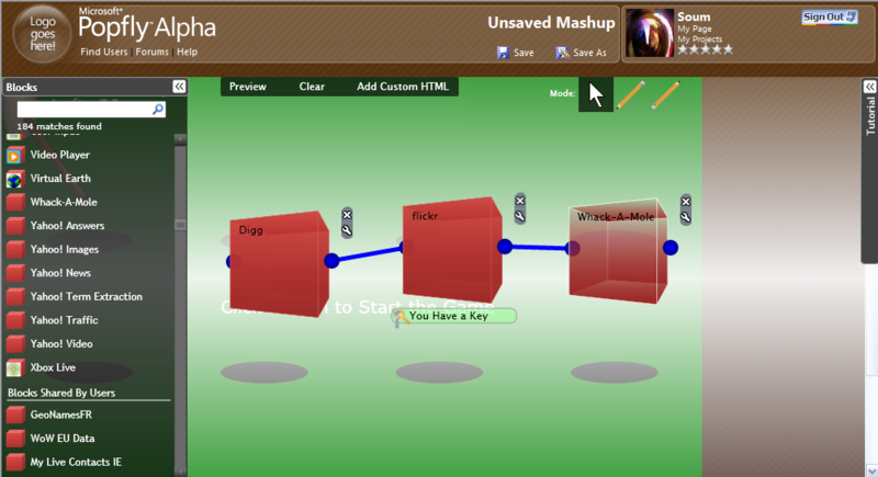 Utvecklarna på Microsoft arbetar på en webbtjänst som de kallar för Popfly. Det handlar framförallt om en dynamisk Mashup-generator som via webservices låter användaren själv integrera olika webbtjänster. Användaren kan via ett snyggt Silverlightgränssnitt länka in olika byggblock, högnivåkoda lite och generera egna mashups. Popfly innehåller också en motor för att skapa webbsidor, men det känns inte i närheten lika nyskapande.
