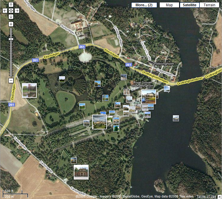 För några dagar sedan uttökade Google sin Google Maps med möjligheten att enkelt visa bilder och information från Wikipedia direkt i webbläsaren. En ny knapp vid namn "More..." finns uppe i högra hörnet vilken ger tillgång till dessa funktioner. Det blir riktigt snyggt med svå bilder utspridda kartan.