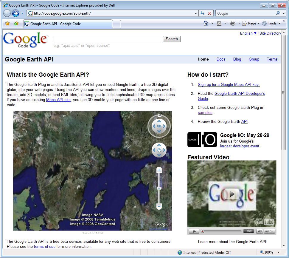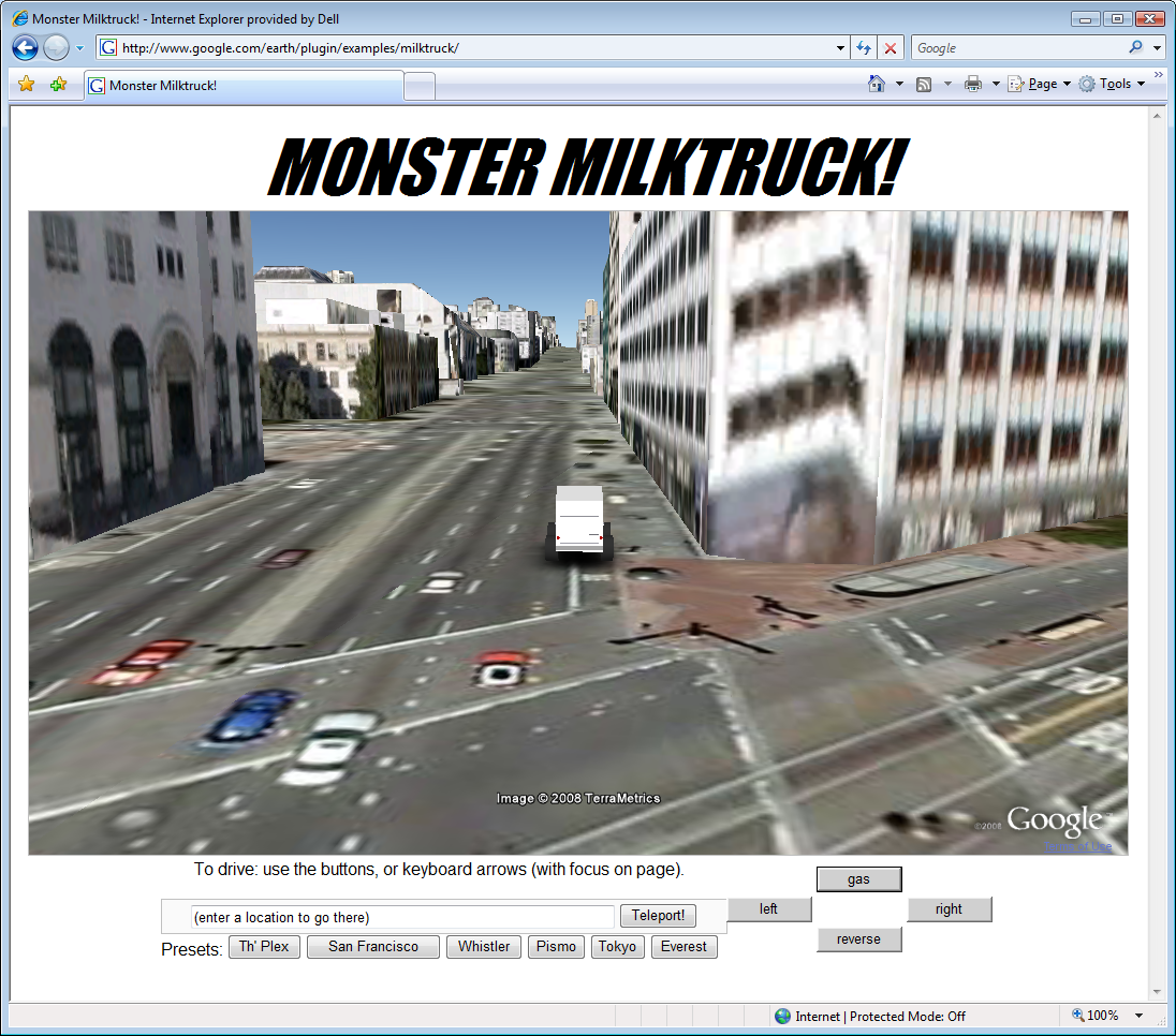 Idag släppte de även en webbläsarplugin för Google Earth (det fristående programmet som visar en 3d-rendering av jordklotet). Än så länge bara tillgänglig för Windows, och fortfarande i /Utvecklingsstadiet, men redan nu ganska stabil och snabb. På /Utvecklingssiten för Google Earth API har de även demos där de gör olika mashups, bl.a. ett där man får köra omkring med en mjölkbil i 3d-världen.