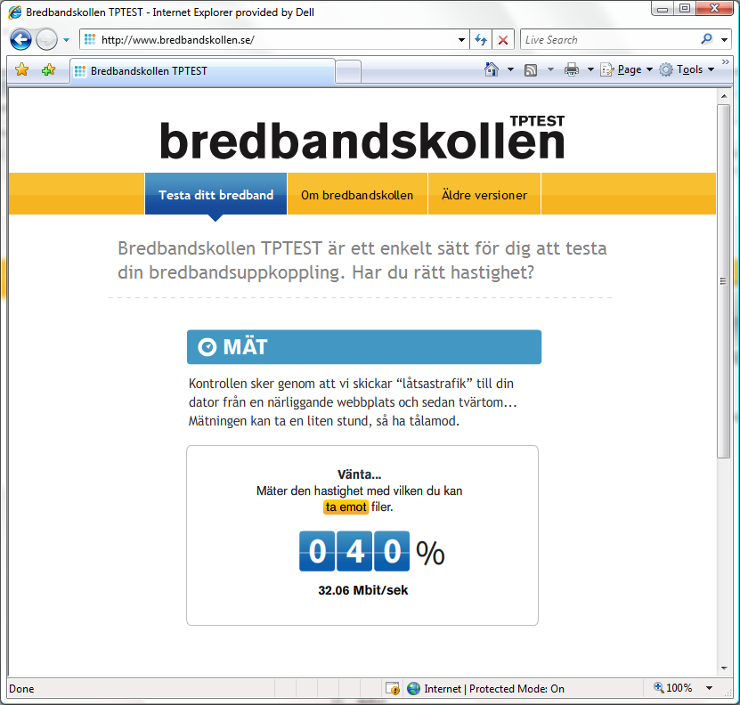 Konsumentverket, Post- och Telestyrelsen och domännamnsregistret .SE har tidigare skapat det utmärkta programmet TPTEST för att göra tester av hastighet i nätet. Man måste dock ladda ner TPTEST och installera på sin dator, och det innehåller ganska många krångliga val.