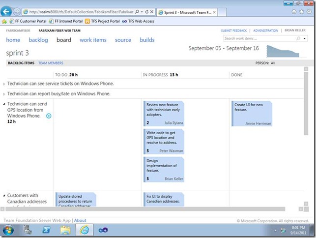 Bland annat finns det en inbyggd Task Board så att man slipper köra en tredjepartsprodukt som t ex Urban Turtle när man jobbar i Scrum:
